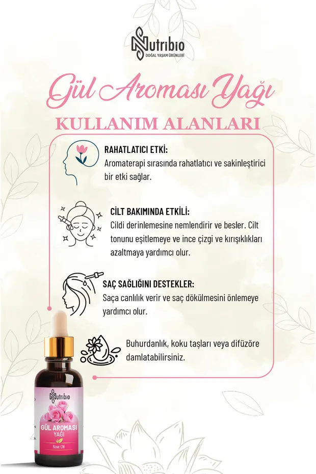 Nutribio Gül Aroması Yağı %100 Saf 20 ml